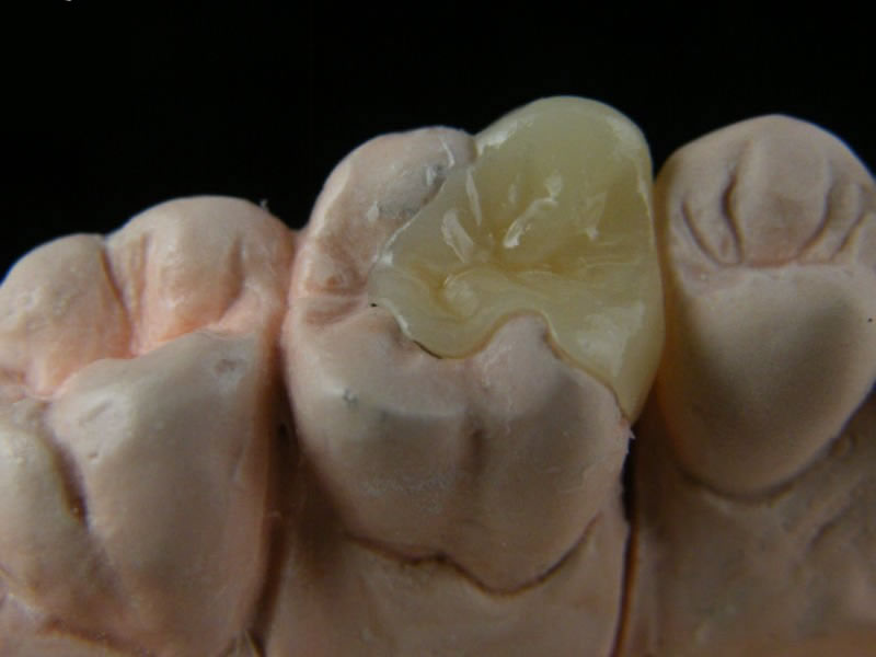 Der Zahnarzt bereitet den Zahn vor, indem er ihn von Karies reinigt. Er macht einen Abdruck und im weiteren Verlauf stellt der Zahntechniker diese Art der Füllung her. Danach ist sie bereit, um an die Zahnhöhle geklebt zu werden.